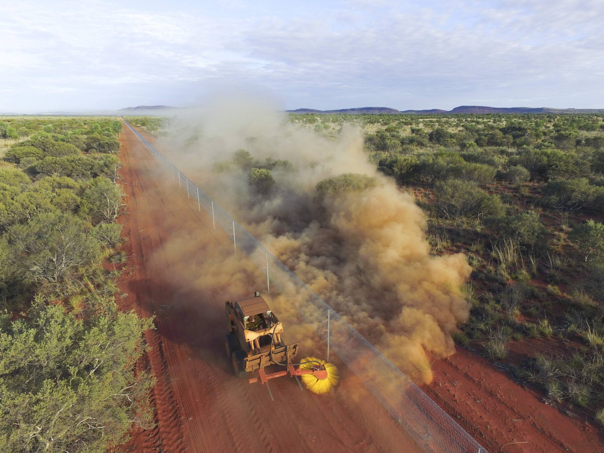 “The sweeper enabled us to dress the ground surface even with the pickets and strainers in place. This enabled the netting skirt to laid flat on the ground ensuring the integrity of the entire feral animal proof fence was not compromised” (Josef Schofield.)